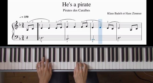 TÉLÉCHARGEZ ICI la partition piano gratuite pour pianistes débutants du célèbre thème du film « Pirates des Caraïbes », intitulé « He’s a pirate« , composé par Klaus Badelt et Hans Zimmer.