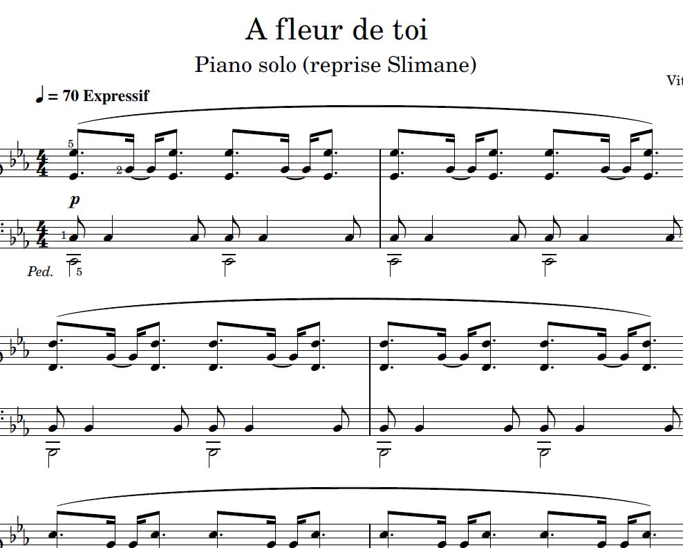 CLIQUEZ ICI pour télécharger en PDF la partition de mon adaptation pour piano solo de la reprise faite par Slimane de la chanson de Vitaa, « A fleur de toi«