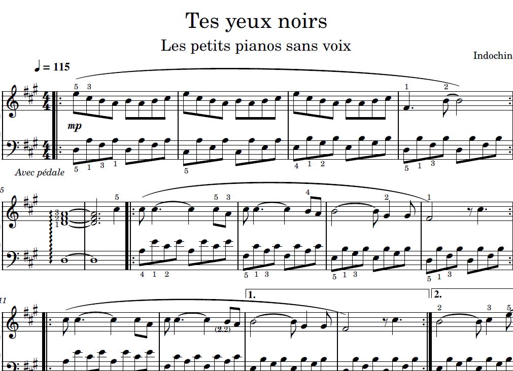 Partition piano : « Tes Yeux Noirs », d’Indochine (Les petits pianos sans voix)