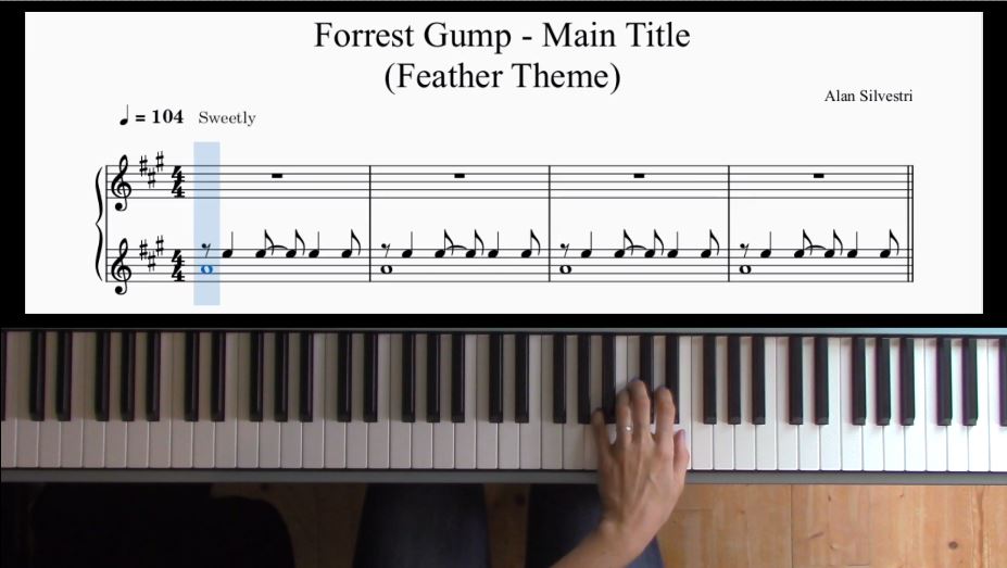 Redécouvrez ce thème magnifique composé par Alan Silvestri pour le film « Forrest Gump » du grand Robert Zemeckis. Ne vous laissez pas tromper par l’apparente simplicité de la mélodie… La main gauche, toute en contretemps, présente une première difficulté avec les basse…