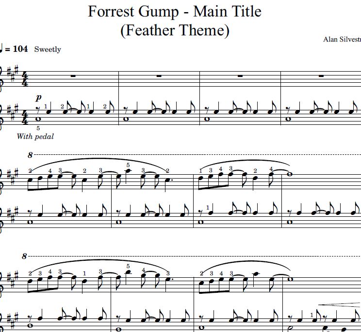 Partition piano sheet music / « Feather theme » (Forrest Gump), Alan Silvestri